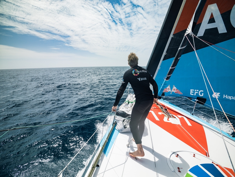 "But we know sailing is like that..." he concluded with a grim laugh. The only strategy left, he said, is to try and go as fast as possible for as long as possible. "We'll see."