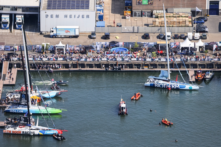1130 local time -- The VO65s are starting their sailors parade now, preparing for the start of Stage 3 of The Ocean Race VO65 Sprint... It's another glamour day in The Hague - sunny, warm and there should be about 8-10 knots of wind by start time at 13:10, just over one and half hours from now.