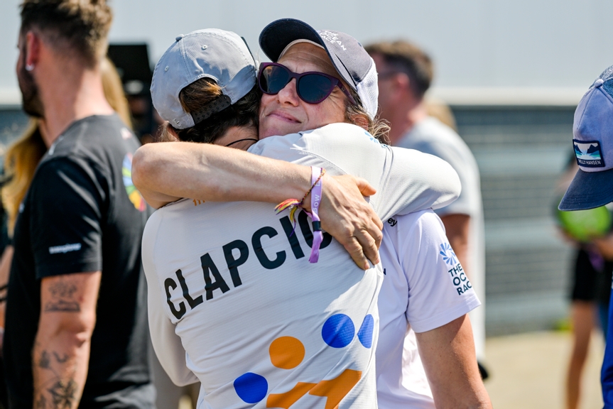 1400 local time -- Jelmer van Beek from the head of the fleet on Team JAJO: "This has been super nice. It's great to have so many people out supporting us. It keeps amazing me. And we're in first place so a good start for us on the race to Genova."