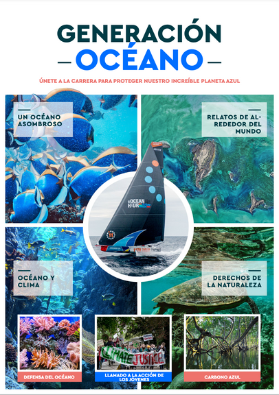 Creado en colaboración con 11th Hour Racing, patrocinador fundacional del programa de sostenibilidad Racing with Purpose (Compitiendo con un Propósito) de The Ocean Race, Generación Océano ofrece una descripción general de los principales temas oceánicos, presenta ejemplos y buenas prácticas procedentes de todo el mundo, destaca los vínculos entre el océano y el clima y reflexiona sobre la necesidad de reconocer del oceáno. El programa también ofrece ideas para defender los océanos y un glosario completo de conceptos relacionados con los océanos.