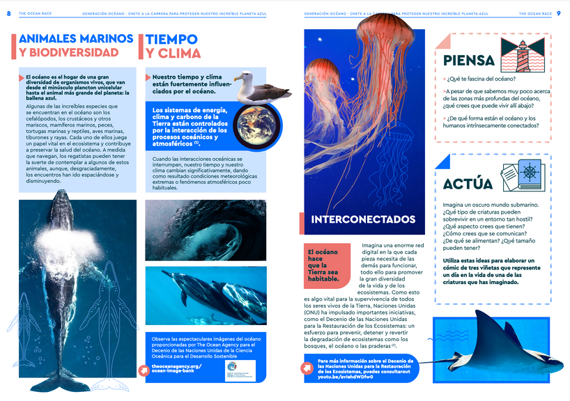 The Ocean Race, la vuelta al mundo a vela conocida como la prueba por equipos más dura del mundo del deporte, ha lanzado Generación Océano: Únete a la carrera para proteger nuestro increíble planeta azul, un nuevo programa educativo para educación secundaria. Sus atractivos materiales ofrecen a padres y maestros todo lo que necesitan para ayudar a los alumnos a comprender el crucial papel que desempeña el océano en el mantenimiento de la vida en la Tierra, las amenazas que ponen en peligro este sistema vital y las soluciones necesarias para protegerlo.