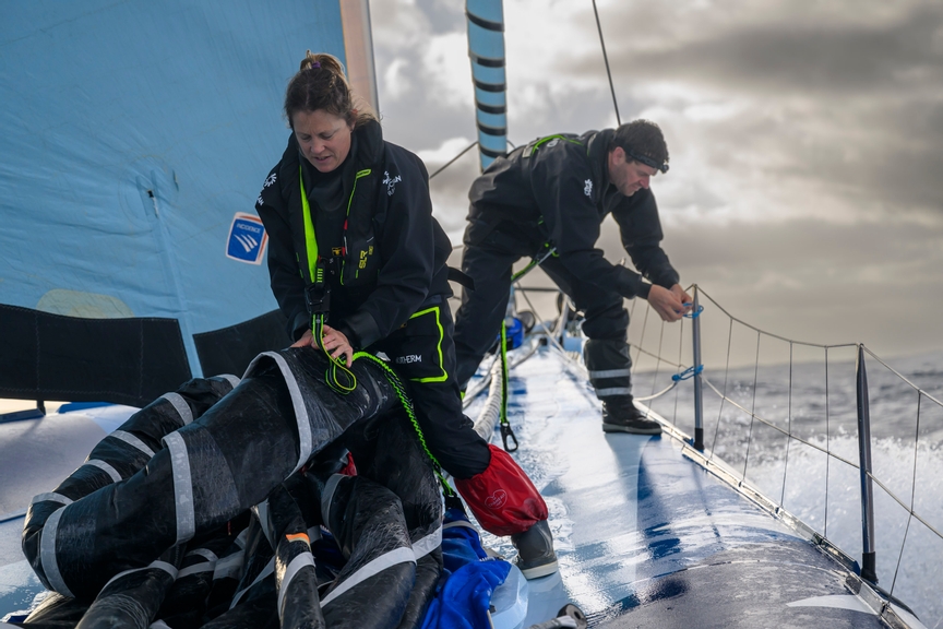 "Nous avons une grosse dépression à traverser. Ce système ne se déplace pas très vite, il a presque la même vitesse que nous, donc nous pourrions être avec lui presque jusqu'en Australie", a déclaré Tom Laperche, à bord du Team Holcim-PRB. "Les conditions de vent et l'état de la mer seront difficiles. Nous avons une option pour rester au nord. Si nous allons au sud, nous aurons de nombreuses heures avec un vent de plus de 40 nœuds - ce qui est un peu trop."