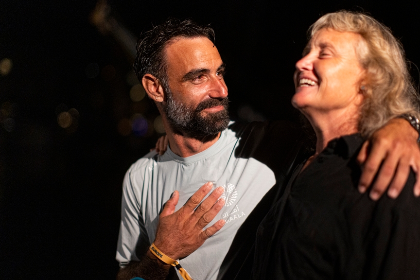 « C’est un mélange de sentiments, » a déclaré le skipper Alan Roura. « On est excité d’arriver mais un peu triste qu’une aventure incroyable touche à sa fin. C’était une longue étape mais nous l’avons vraiment appréciée, et ce soir, nous avons eu une très belle arrivée avec le coucher du soleil dans ce décor magnifique. »