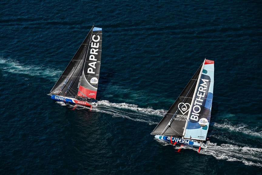 Dans le second tour, Biotherm est remonté progressivement sur Paprec Arkéa au point de le dépasser en prenant à l’intérieur d’une bouée. Le leader, avec une incroyable sérénité, a ainsi pris le meilleur et ne l’a plus quitté. Si les positions en tête sont restées inchangées, la hiérarchie a été bousculée derrière. Holcim-PRB a en effet été pris à défaut dans une manœuvre les obligeant à redoubler d’intensité.